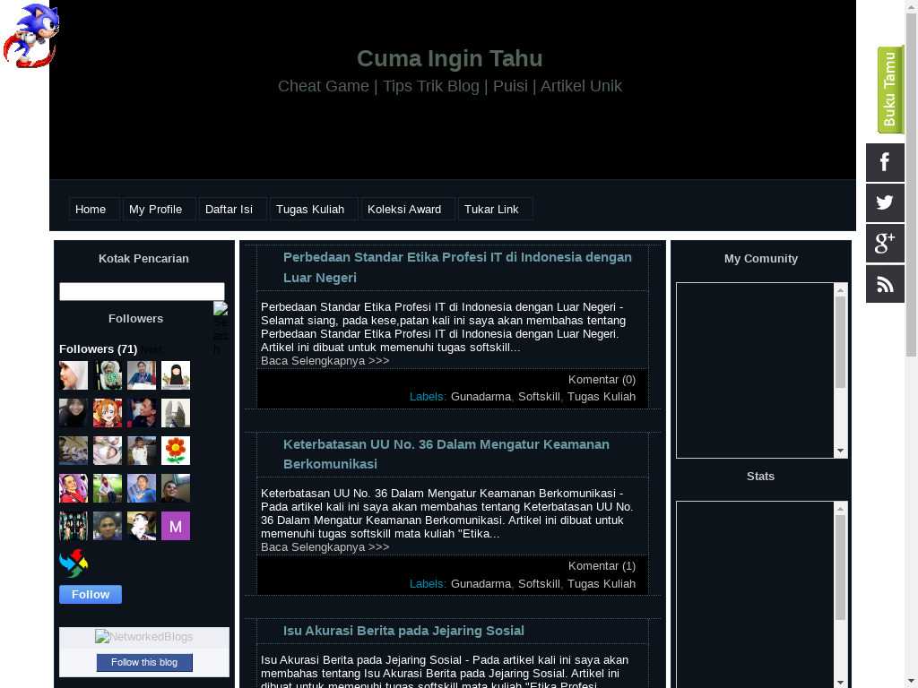 Cuma Ingin Tahu adalah blog yang berisi cheat-cheat game, puisi dan artikel menarik.