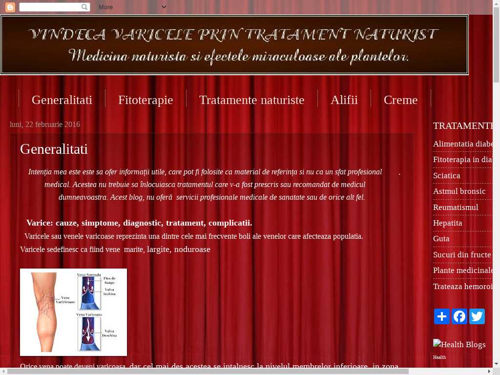 Vindeca varicele prin fitoterapie Generalitati despre varice, tratament prin fitoterapie