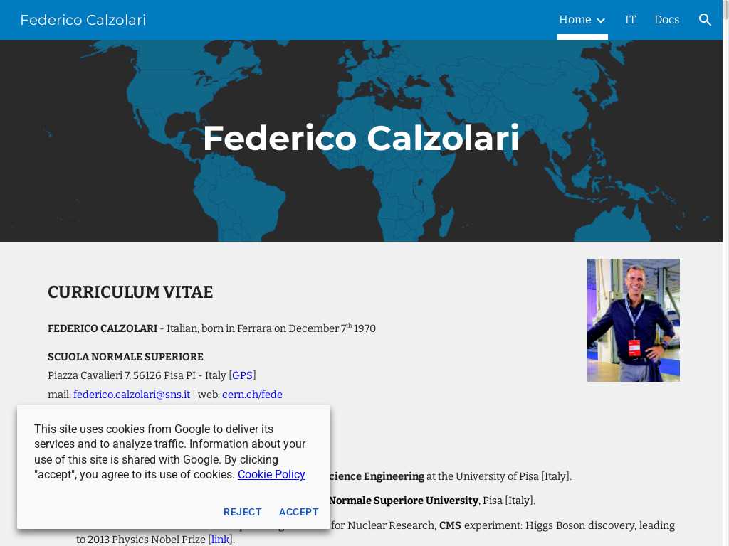 FEDERICO CALZOLARI photo, CERN, SNS, INFN, CNR, PISA, ITALY