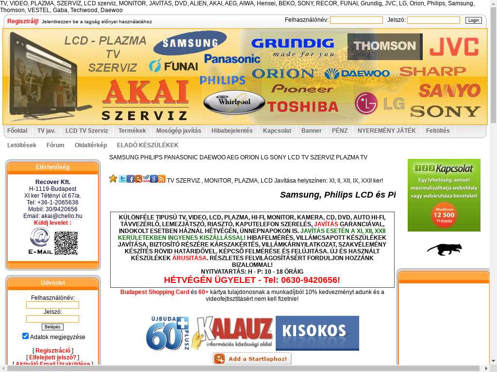 TV SZERVIZ DVD LCD PLAZMA JAVÍTÁSA XI. XII. ker.