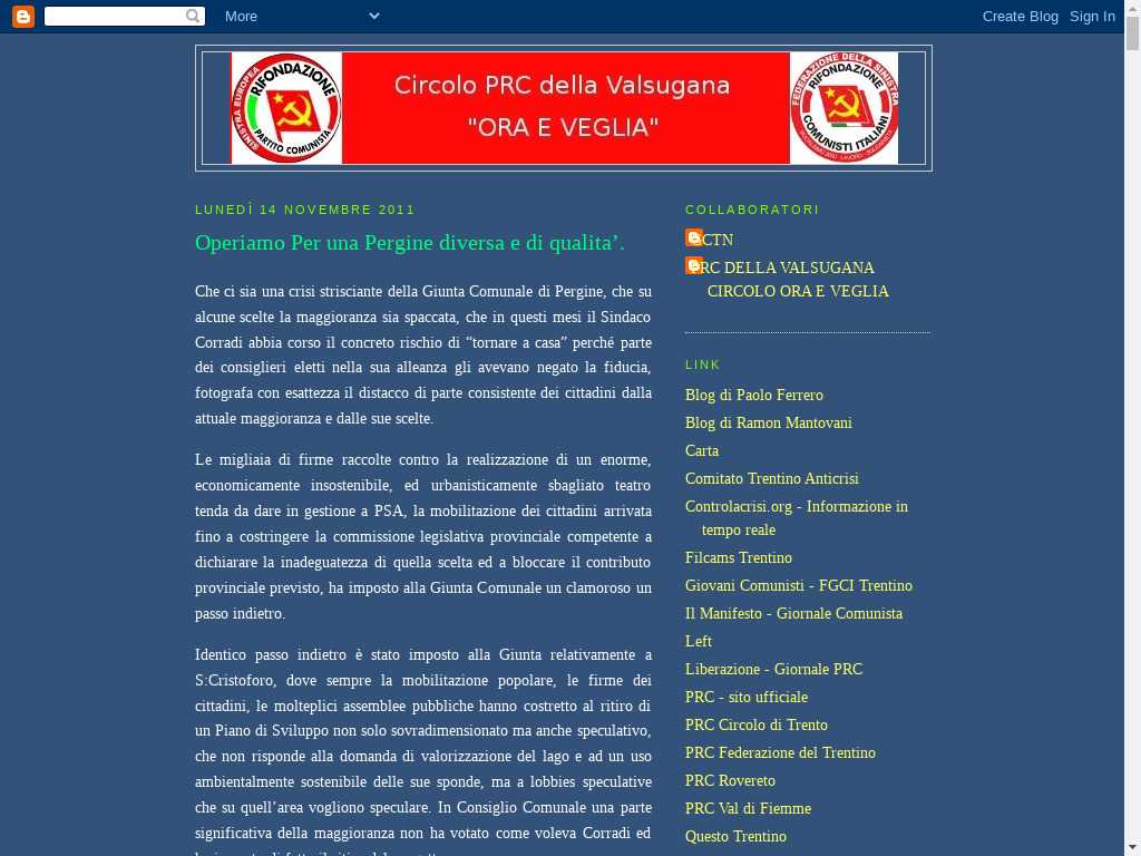 Blog di Rifondazione Comunista di Pergine Valsugana