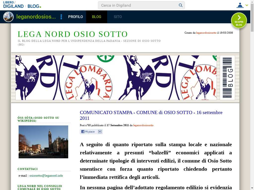 Il blog della Lega Nord per l'indipendenza della Padania ad Osio Sotto (BG)