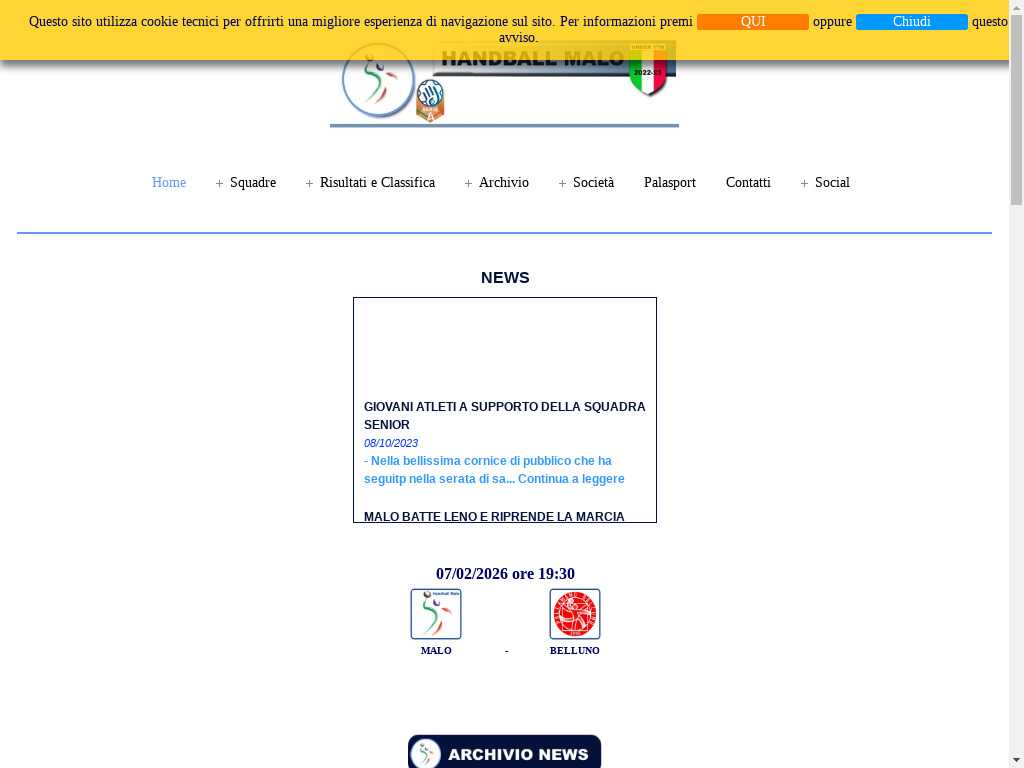 Handball Malo Sito ufficiale Pallamano Malo Vicenza