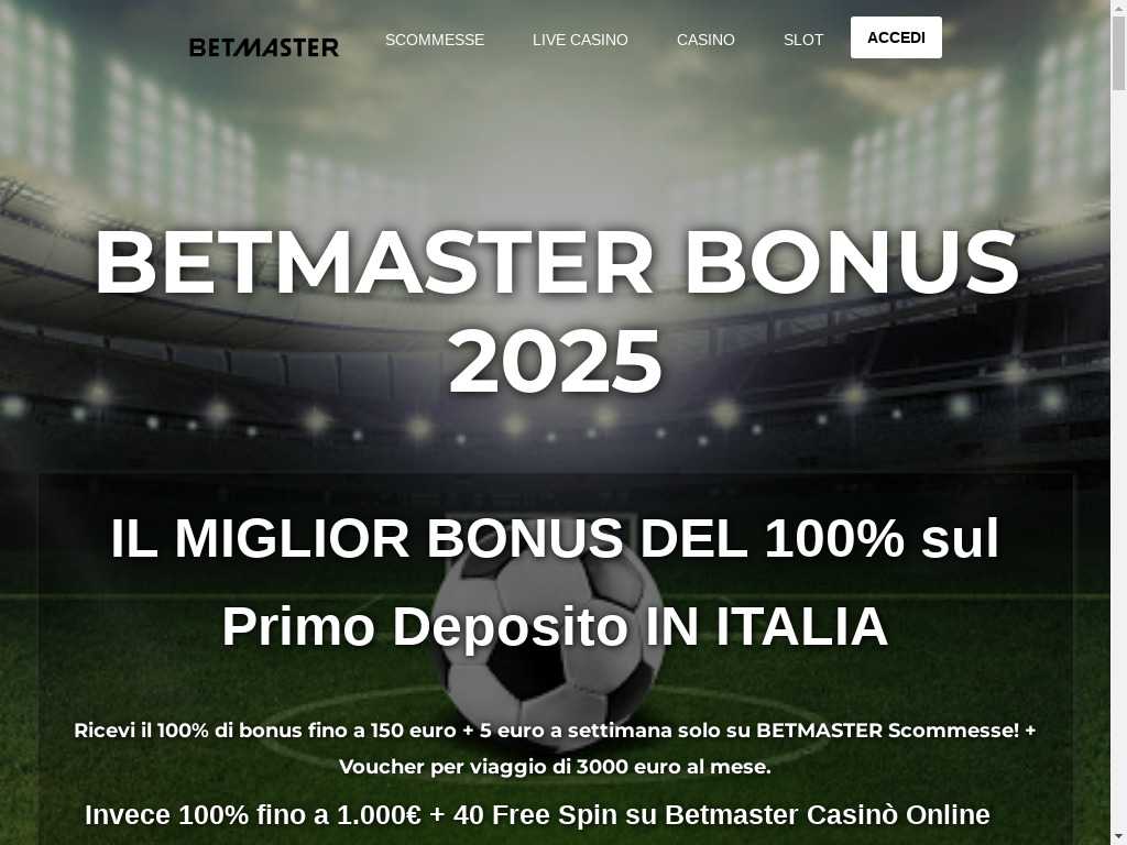 Betmaster Top Bookmakers » Accedi a Betmaster con i Link Aggiornati 2020 » Bonus Scomme