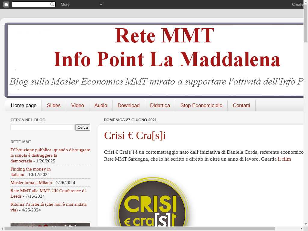 Un blog sulla Me-MMT mirato a supportare l'attività dell'Info Point